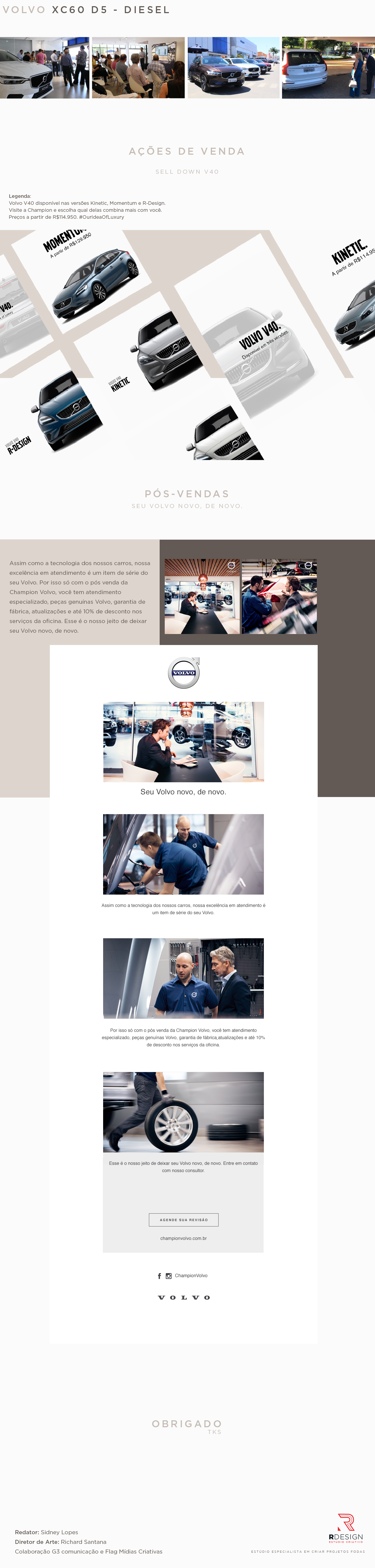 Conhecida por fabricar os carros mais seguros do mundo, a Volvo vem se aproximando ainda mais de seu público através da sua rede de concessionários, criando verdadeiras comunidades de defensores da marca em todas as suas regiões de atuação. Como agência e dupla criativa, aproveitamos as melhores oportunidades para interagir com as pessoas que merecem conhecer os veículos Volvo, abusando do design escandinavo e da filosofia futurística.
